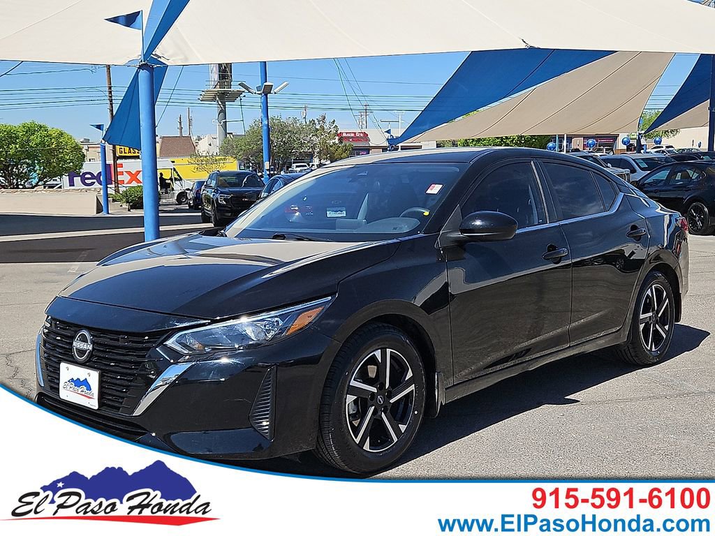 Super Black 2025 Nissan Sentra SV FWD CVT with Xtronic 2.0L I4 DOHC Equipped with theft deterrent, CVT with Xtronic, Charcoal.